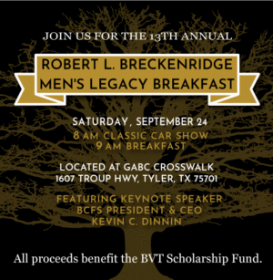 The Robert L. Breckenridge Men’s Breakfast has become a highly attended premier event for men from our East Texas community and beyond. This event always kicks off with a hot cup of coffee in hand and a stroll through a stunning classic car show, where car enthusiasts showcase their beauties for all to enjoy.